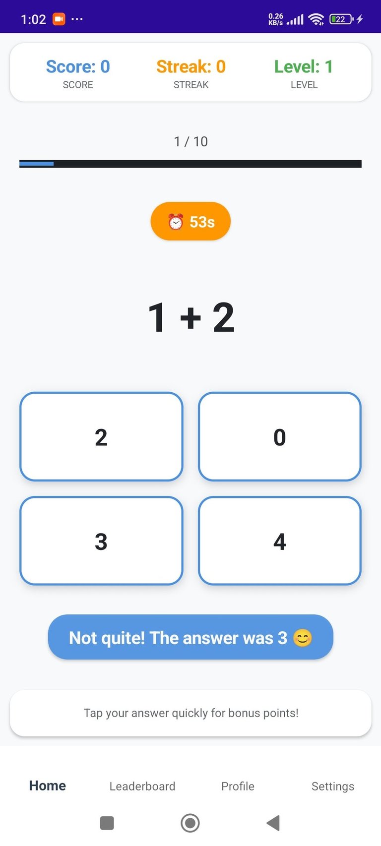MathQuiz adjusts the difficulty level based on user performance, ensuring a challenging yet enjoyable experience as skills improve.